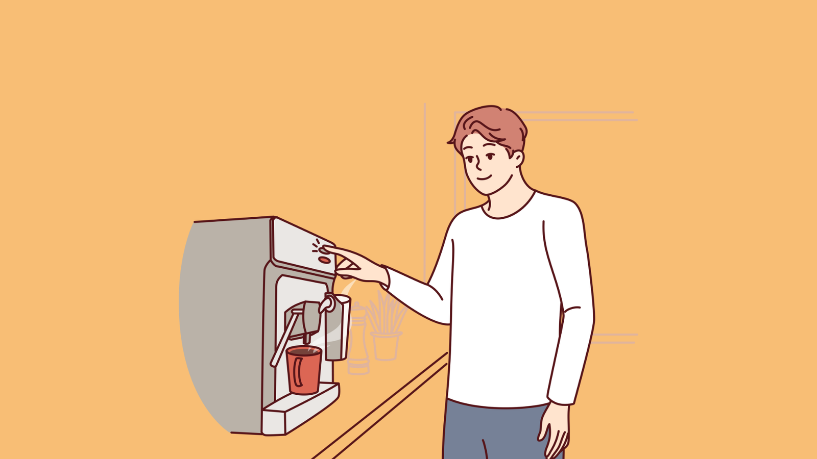 Jim adorava o cheiro de café. Ele adorava beber café ainda mais. Ele despejou os grãos na cafeteira. Ele pegou um jarro e colocou embaixo da máquina. Ele apertou um botão e ela começou a preparar o café.