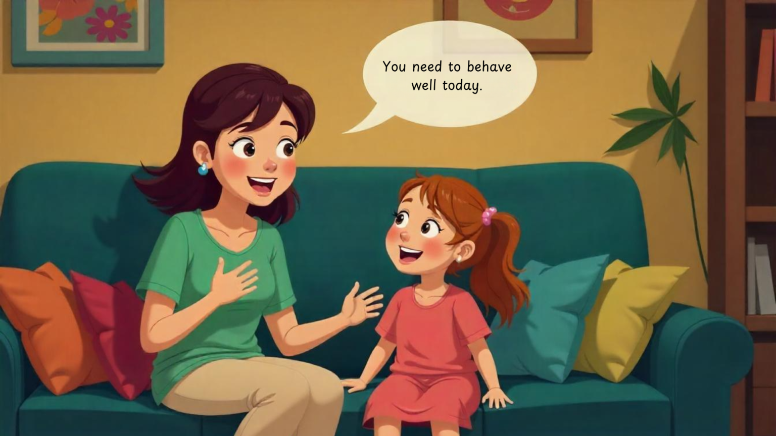 Exemplo: “Now, I want you to be on your best behavior today.”